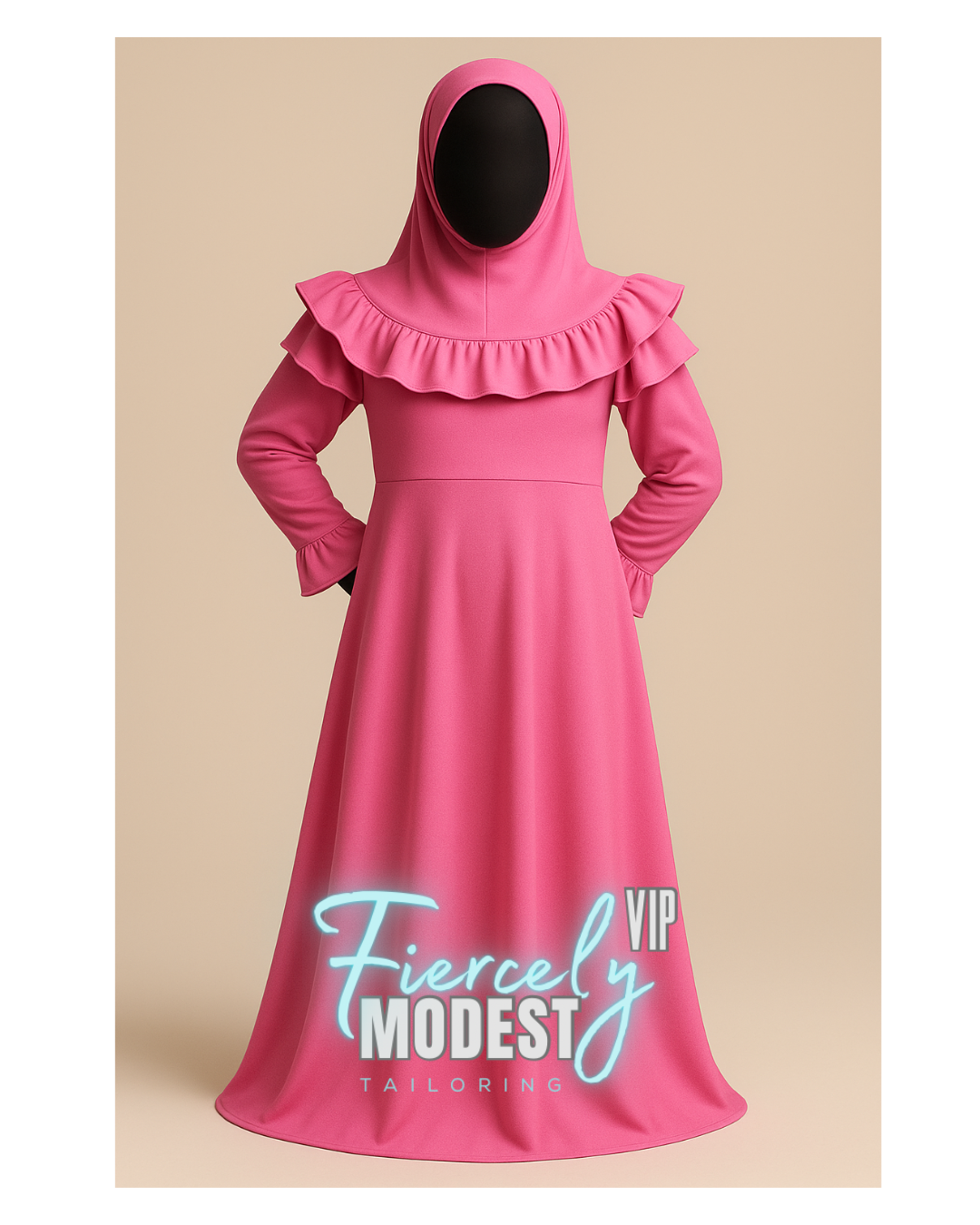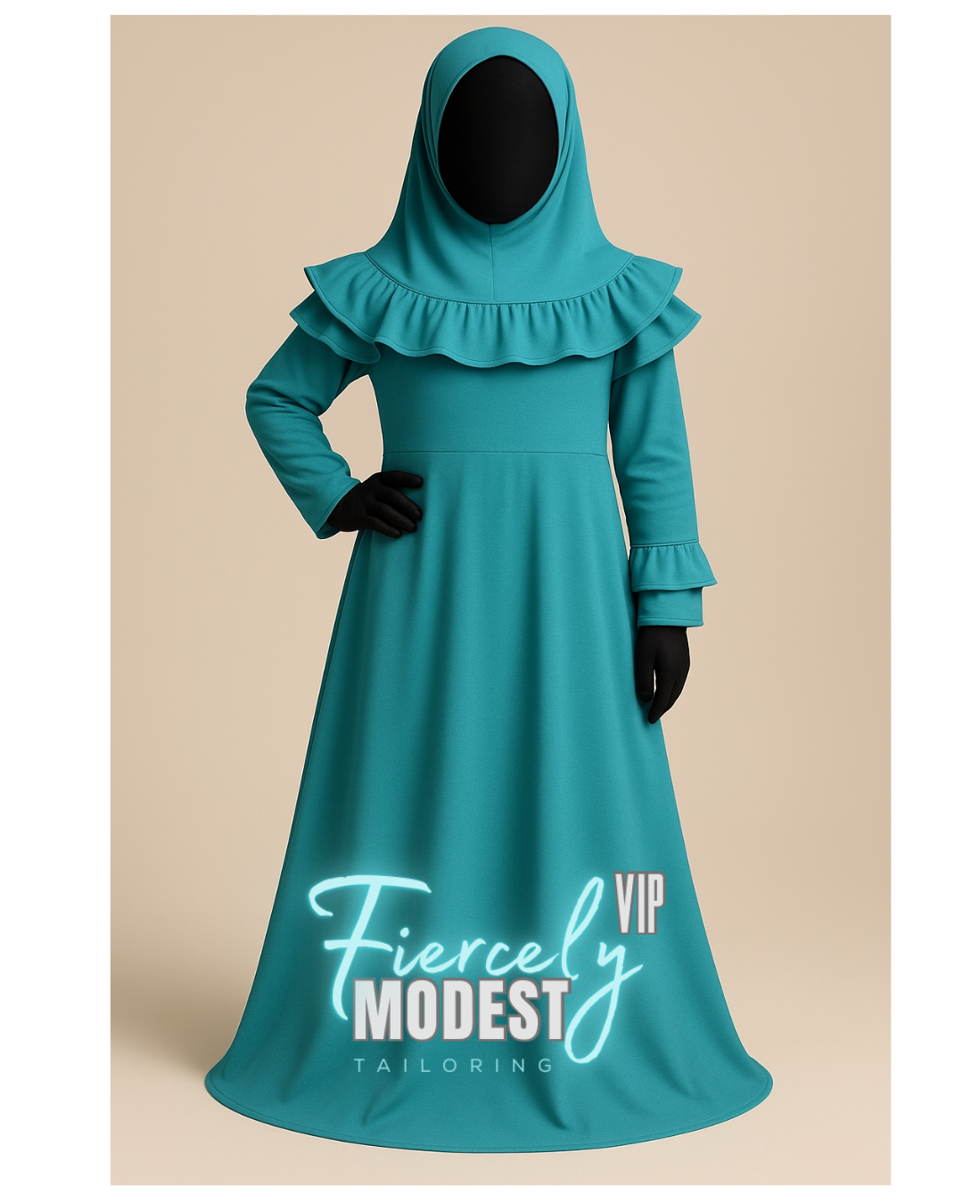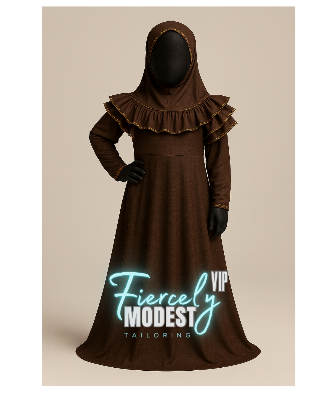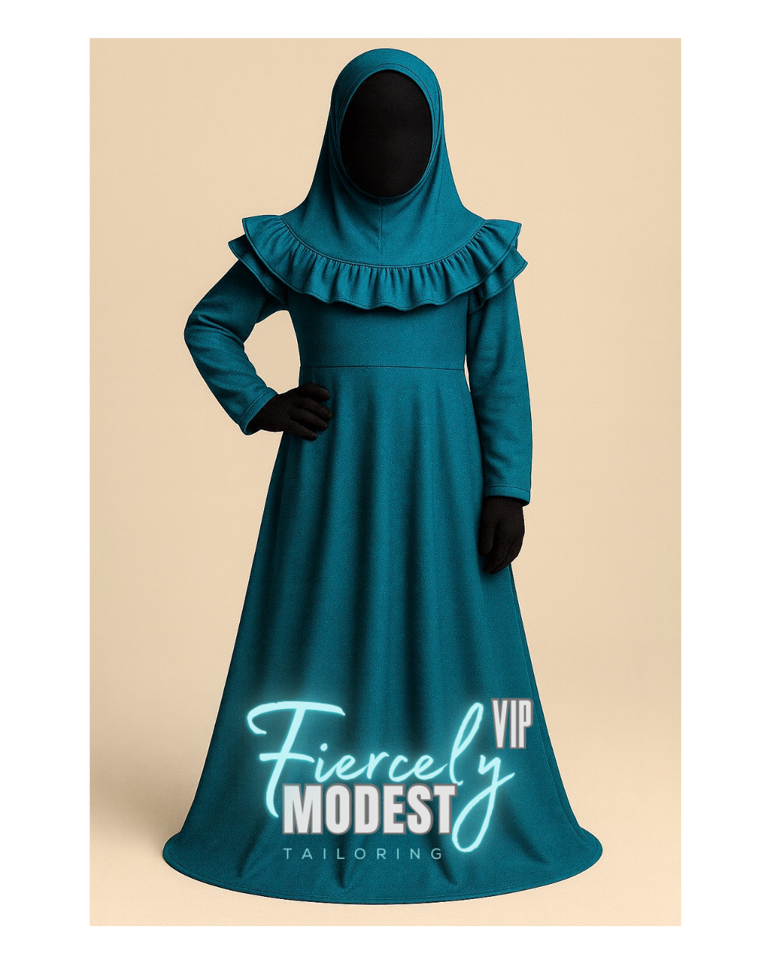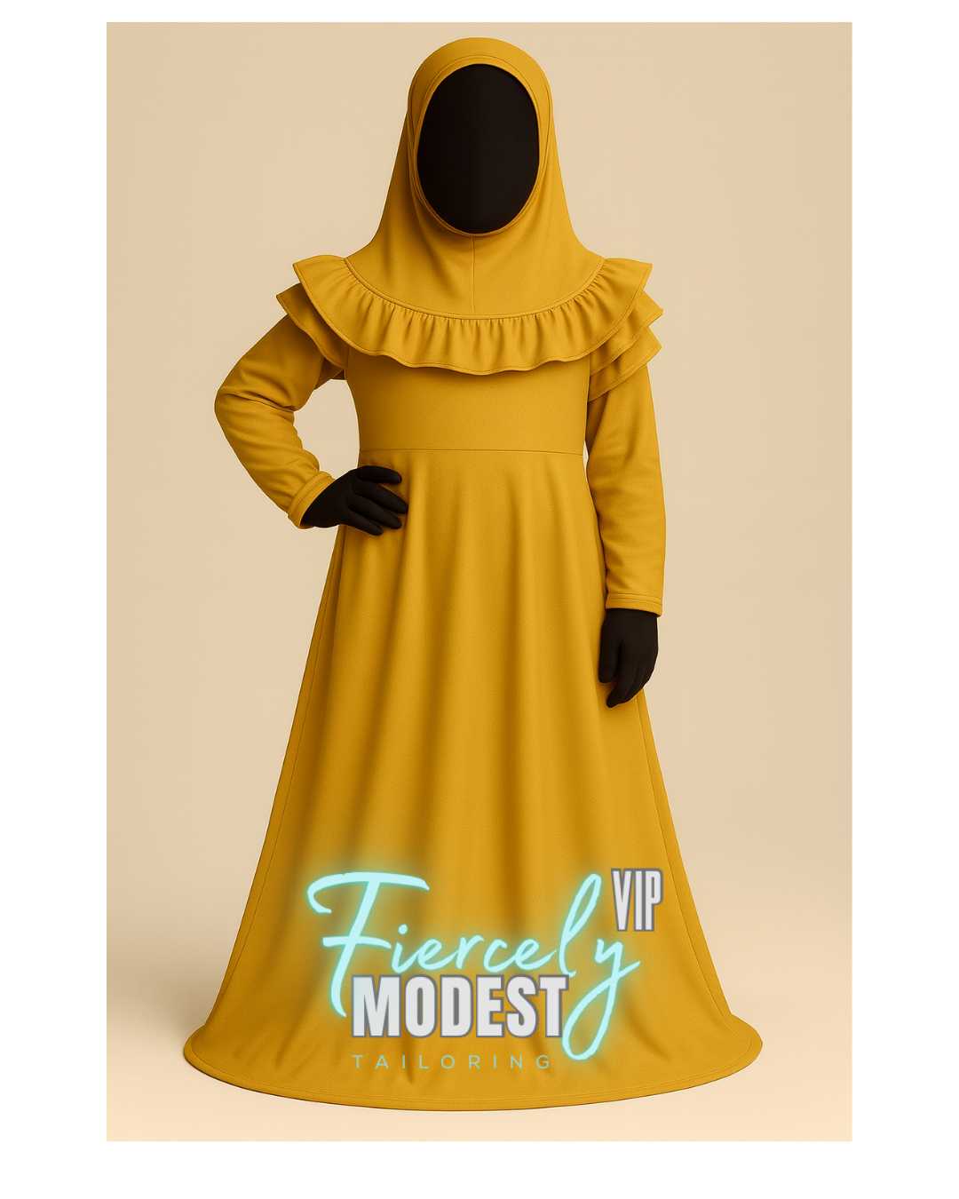 The matching khimar is tailored for full coverage and easy wear, making it ideal for school, prayer, or special occasions. Its rich mustard-gold hue brings a cheerful pop of color that radiates confidence and class.